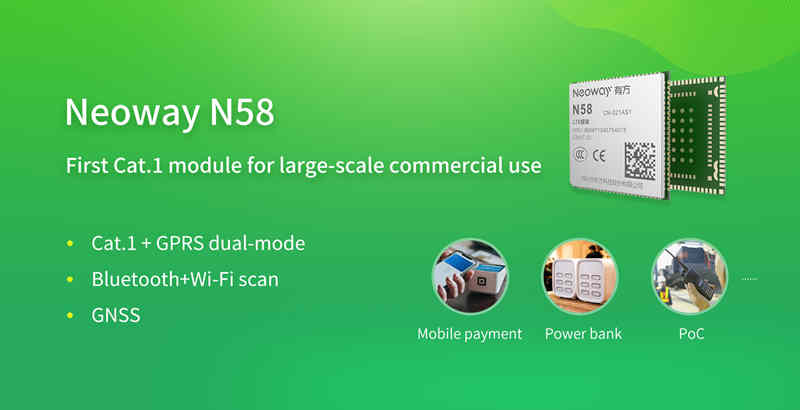 In addition, Neoway's Cat.1 star products N58 have also been shipped in batches by using China Mobile's level-1 terminal marketing system industry product library. As a Cat.1 module that is widely commercially used around the world, N58 has excellent product quality and rich application accumulation, covering many industries, such as in-vehicle pre-installation/aftermarket, smart energy, commercial retail, shared industry, and smart city. N58 has been used by 300+ global customers to provide stable and reliable products and services for many low-to-medium rate scenarios.
