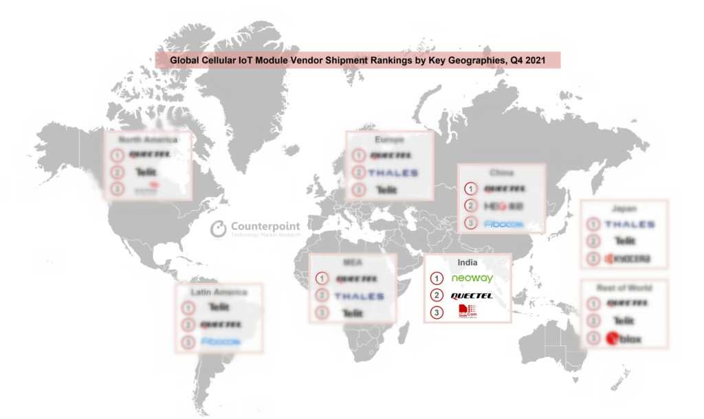 Technical SupportRelying on its outstanding performance in the smart energy field and the Internet of Vehicles (IoV) industry, Neoway ranked the first in terms of market share of IoT wireless communication modules in India in Q4 of 2021 according to the latest report recently issued by Counterpoint, a well-known research agency.