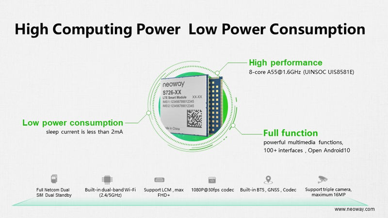 Neoway and UNISOC have a forward-looking insight into the needs of the industry, and recently launched the smart modules S720 and S726. S720 and S726 serve different vertical industries by using different product capability levels, helping customers to choose flexibly, simplifying application development, and reducing investment costs.