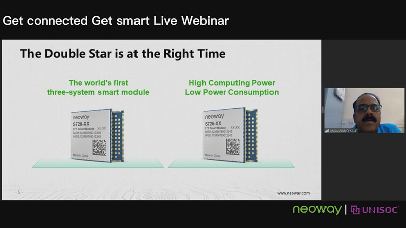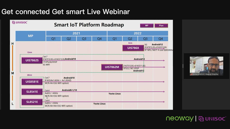 Technical SupportOn May 26, 2022, Neoway and UNISOC held a "Get connected, Get smart" webinar to share and discuss the application trends and key technologies of smart communications chipsets and modules in the IoT market for global IoT industry customers.