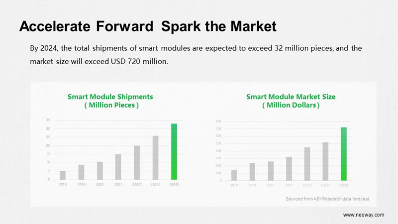 According to ABI research data, the total shipments of smart modules are expected to exceed 32 million pieces in 2024, corresponding to a market size of about 720 million US dollars. Among them, the applications of high-end smart modules are increasing rapidly, and the compound annual growth rate of shipments from 2020 to 2024 can reach 150%, which is expected to exceed 8 million pieces, corresponding to a market size of more than 400 million US dollars.