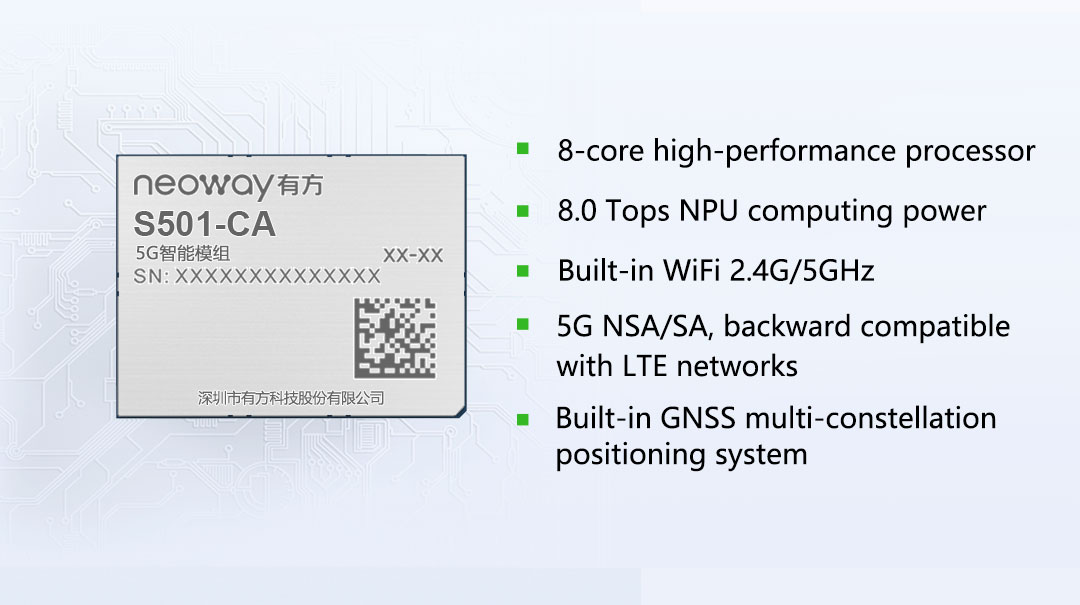 As a leading provider of reliable IoT access communication products and solutions, Neoway Technology plays a crucial role in the promotion, application, and innovation of 5G technology. Neoway has continually developed a range of 5G modules, including industrial-grade, automotive-grade, and smart modules, as well as 5G MBB solutions. Customers can choose from various terminal scenarios and needs, empowering 5G applications in digital transformation.